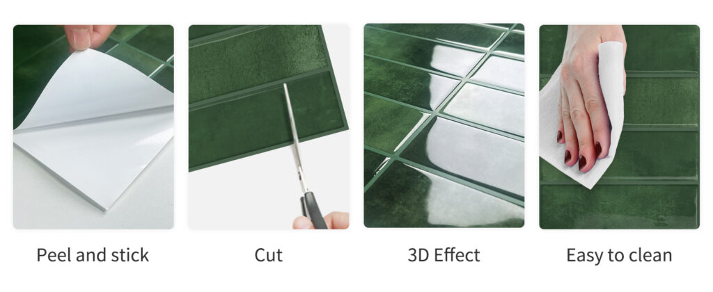 Our recommended Bottom-to-Top installation method utilizes a smart overlapping technique. By placing the upper tile slightly over the lower edge, you create a natural “shingle” effect that prevents moisture from seeping behind the adhesive. This makes it an ideal, reliable solution for humid environments like kitchens and laundry rooms.